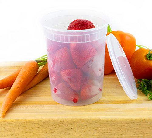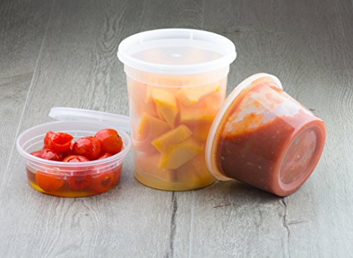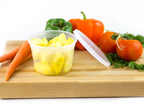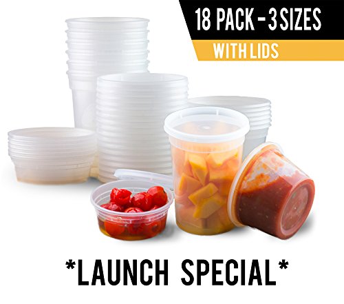 - A VARIETY PACK: This is a pack of 18 Deli Cups in three different sizes. You’ll get 6 8ounce Containers, 6 of 16 ounces and 6 of 32 ounces. This is very convenient, since you will be able to store many different types of food in them.