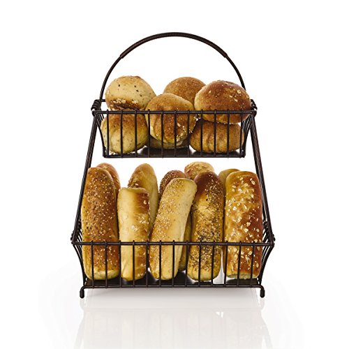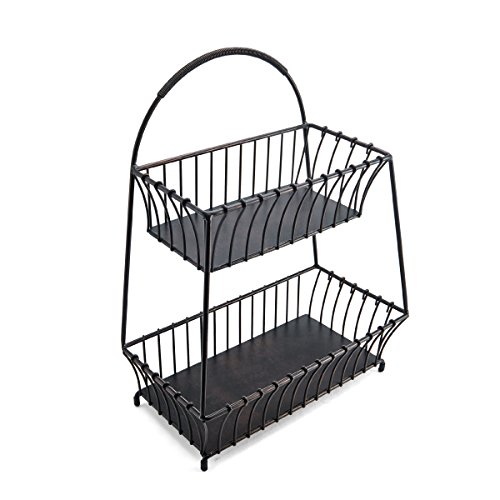 Gourmet Basics by Mikasa General Store 2-Tier Flatback Basket, 18-Inch, Antique Black