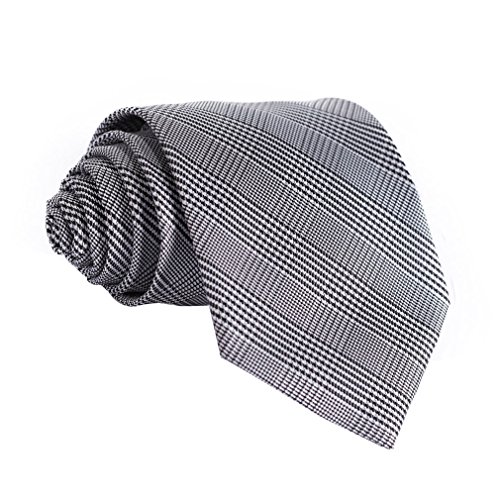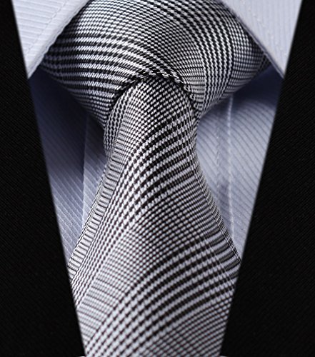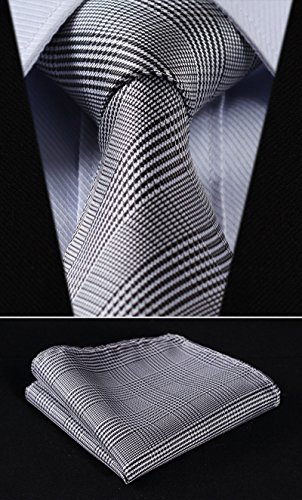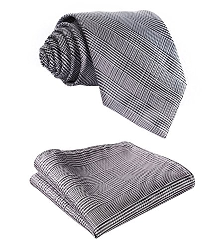 Hisdern HISDERN Herren Krawatte Taschentuch Check Krawatte & Einstecktuch Set Schwarz-Weiss