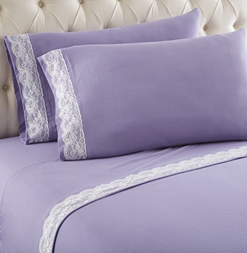 Thermee Micro Flannel Lace Edged Sheet Set, Cal-King, Lilac