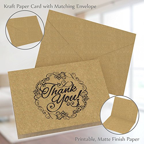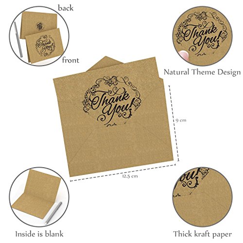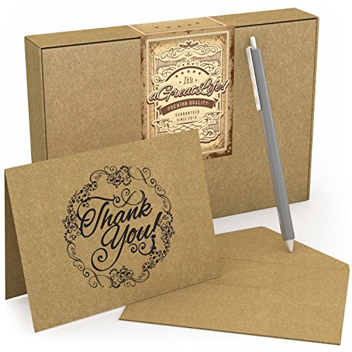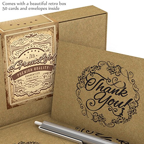 50 Count Krafty Thank You Cards with Envelopes & Free Pen: Best Note Card for Weddings, Graduations, Bridal and Baby Showers, Birthdays and Christmas; Perfect for Vintage or Eco-Themed Parties