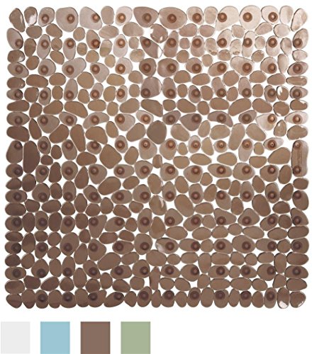 InterDesign Pebblz Non-Slip Suction Bath Mat – Square Mat for Shower or Tub, Amber