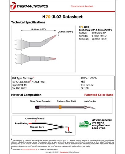 Thermaltronics H70-JL02 Bent Sharp 30deg 0.4mm (0.016") interchangeable for Hakko T31-02JL02