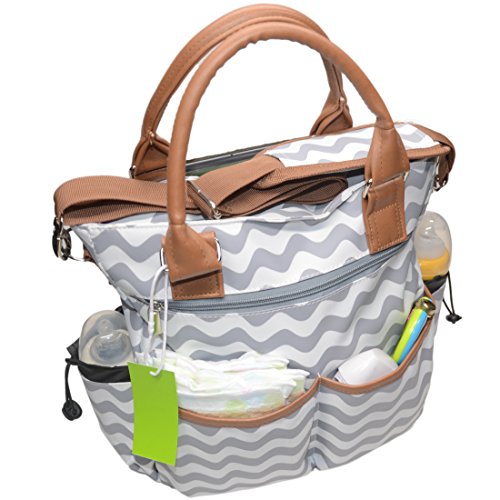 SMART TOTE ORGANIZER UP TO 10 POCKETS include 2 elastic side grid pockets for bottle or feeding items, 2 large front open & 1font zipped, 1 back open pockets (great for keeping "messy things' separate) for your easy to access stuff and MAIL pocket include 4 internal compartments for your baby's small 2 elastic side pockets-1 zipped-1 main