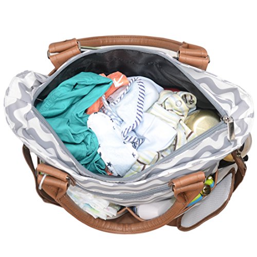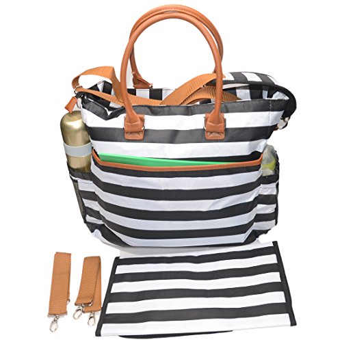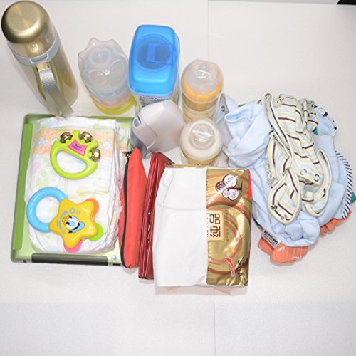 TOP QUALITY MATERIALS - PEVA cotton canvas / wipeable POLYESTER materials used for matching baby changing pad and thermal bottle holder are totally safe for your baby. Durable stroller straps and zipper pulls, strong shoulder strap, accurate stitching will extend life of our baby diaper bags.