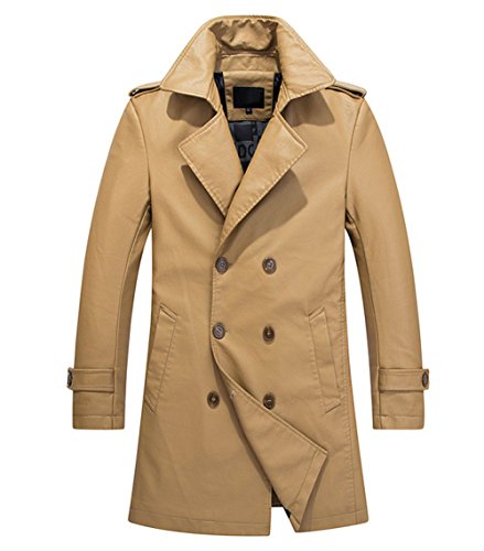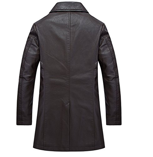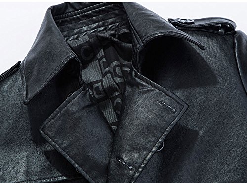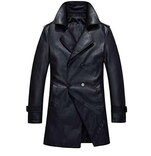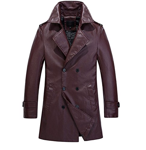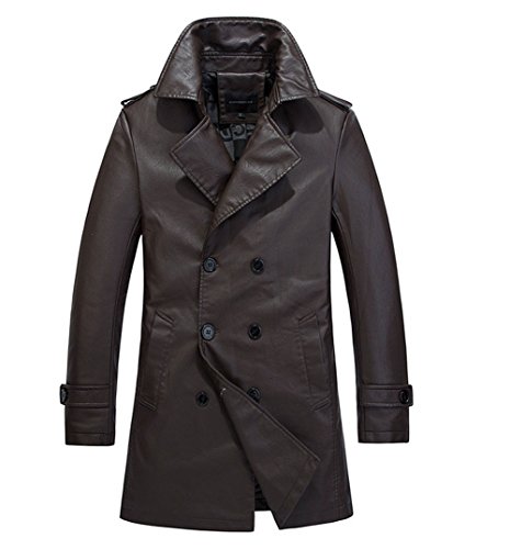 (YangguTown)/Men/Outerwear/DIRECT FROM USA/YGT Men's Faux Leather Slim Trench Coat Double Breas t Parka Jacket Outwear
