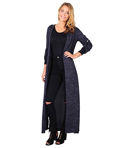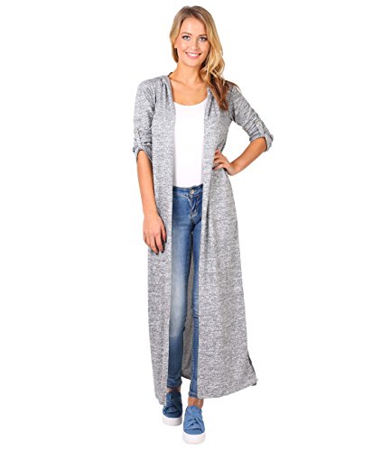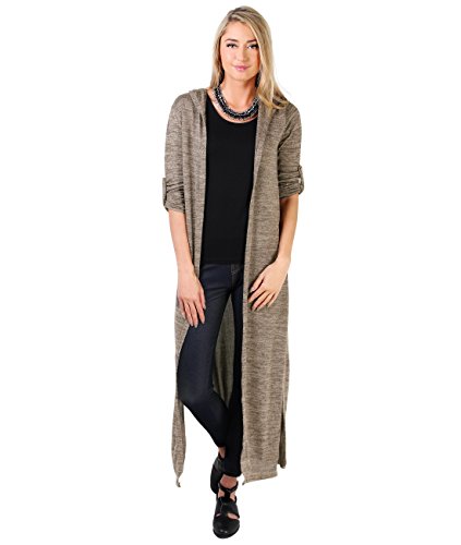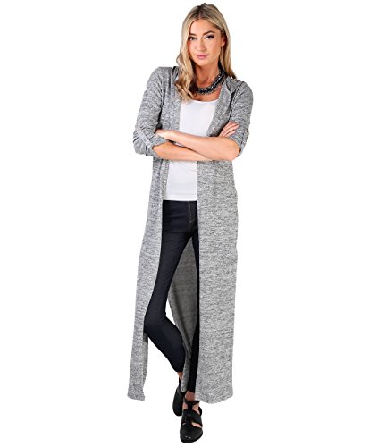 KRISP Womens Soft Knit Hooded Long Cardigan Sweater Shrug Duster Coat