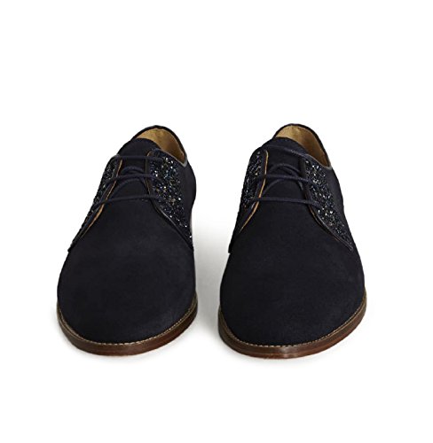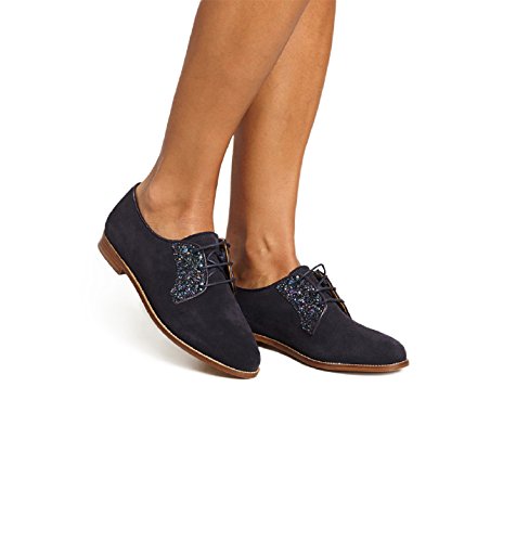 Studio : Bobbies Publisher : Bobbies Binding : Apparel Product Description Navy blue suede derbies, Italian sourced material, calfskin leather lining, tonal lace up closure, glitter inlay, top stitching. Inspired by an era that gave us some of the world's most famous love stories, John-Bobby has created these classic ladies derbies with a difference. Travelling to Italy to find the finest blue suede, these beautiful Novelist lace ups have been decorated with matching glitter for added glamour. Style with a pair of darted trousers, a blouse and a blazer for instant elegance - whatever the occasion. 0