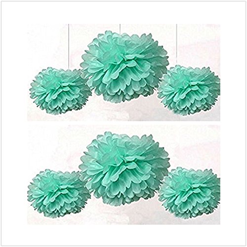 ASIBT 16PCS Mixed Sizes Mint Green Tissue Paper Pom Poms Pompoms Wedding Birthday Party Decoration Holiday Supplies