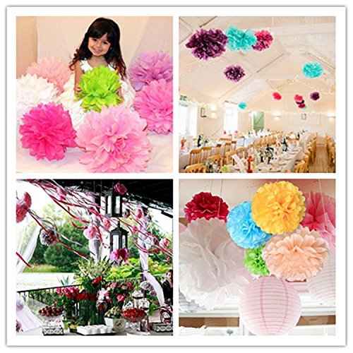 Easy to fluff up with instructions Each pom pom comes with white ribbon for hang in.For home decoration, wedding decoration, festive decorations, party decorations
