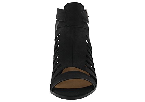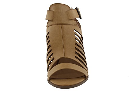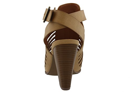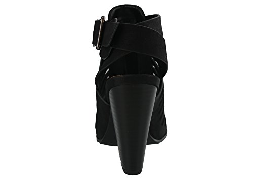 Binding : Apparel Product Description You`ll get attention for all the right reasons wearing Yummy from My Delicious Shoes. This backless peep toe bootie features a comb like net on the upper and two attractive criss crossing straps at the back of the heel. The approximately 4 inch block stacked heel will make your legs look fantastic. 0