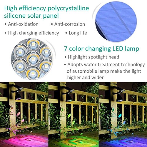 ?Upgraded 4th Generation Solar Outdoor Spotlights?Get super bright spot lights with 7 pcs LED beads at one time. Waterproof and Heatproof features to ensure it can withstand all kinds of weather all round the year.