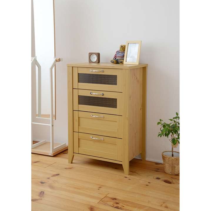 ●大きくなくてもしっかり収納できる引出し4杯付なので、衣類から小物までたっぷり収納できます。