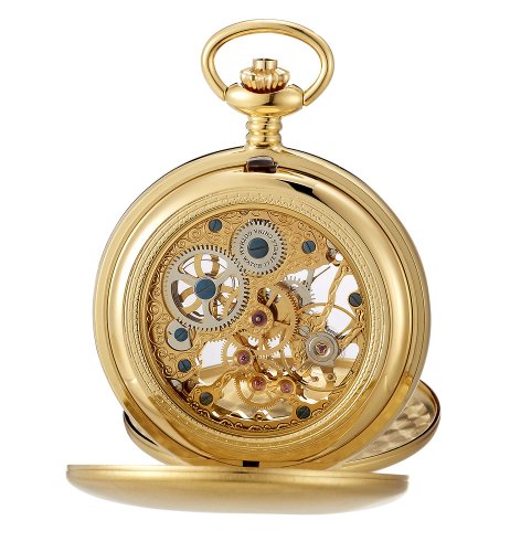-. Title : Gotham Men's Gold-Tone Double Cover Exhibition Mechanical Pocket Watch # GWC18801G