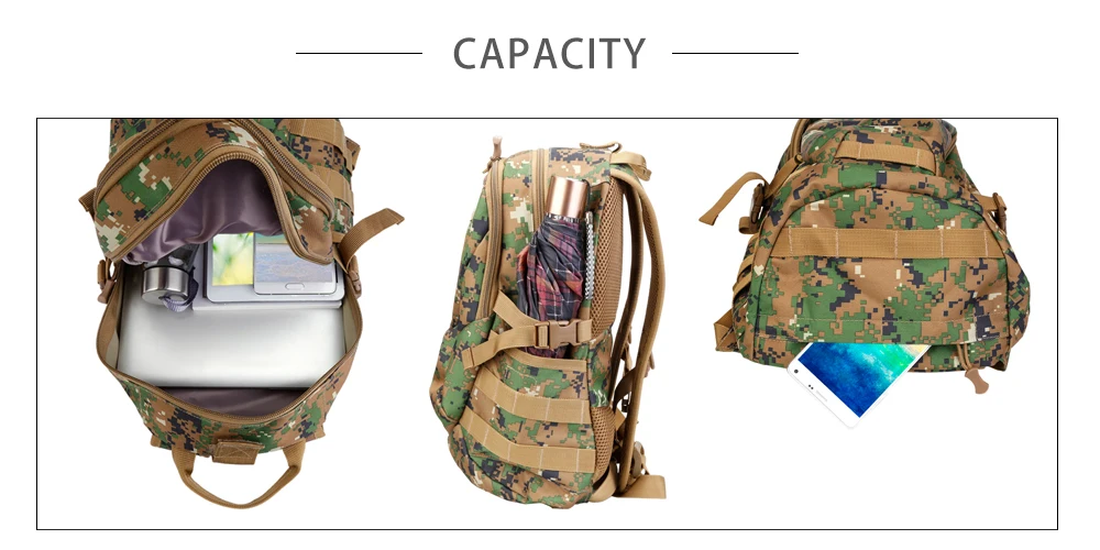 20L capacity, offers enough space to pack all your necessities and equipment