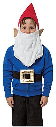 The Gnome Hoodies are blue zippered up sweatshirts with a black belt around the waisted attached by Velcro and a red hat hood with gnome ears and a white attachable beard.Feature