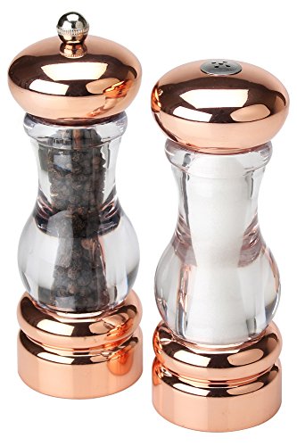 7" pepper mill and salt shaker. Shiny copper plated
