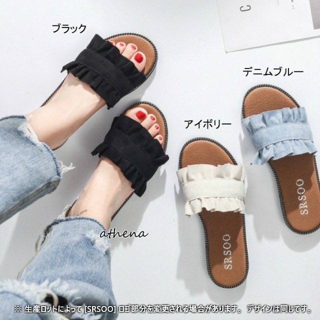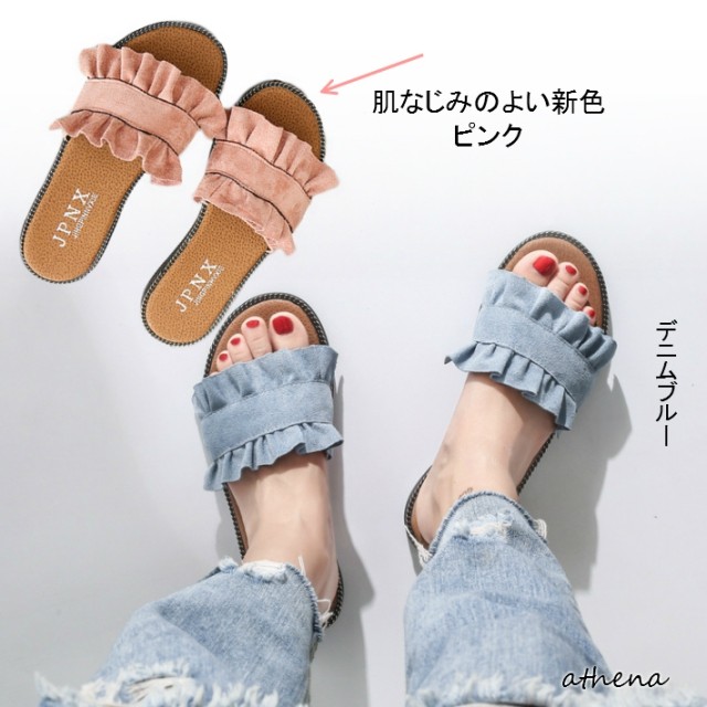 フリル サンダル レディース ぺたんこ 楽ちん スリッパ カジュアル 夏 ダブルフリル かわいい サンダル