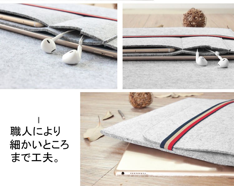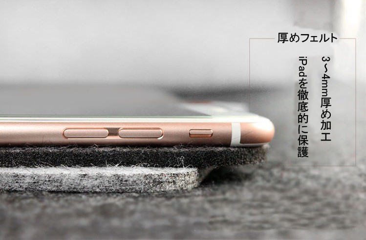 FOR iPad pro 9.7インチ iPad air1/第5世代 iPad air2/第6世代素材:フェルトカーラー:ライトグレー ダークグレーサイズ:27.5*19.5cm1.洗練な縫製工芸とフェルトのデザインで質感が良いインナーケースです。2.フェルトでも耐衝撃性は十分です。繊維系の生地は厚手でショックにも強く、適度に柔らかいのでiPad Proを傷つける心配もありません。3.複古靭性ゴムバンドデザイン、復古係pp強化線を採用し、見た目に優れ、耐久性あります。4.コスパと軽さ、ファッション性も兼ね備えたiPad Pro9.7inch用カバーです。手触り良く色も良く、裏起毛みたいなエコ素材でかなり堅牢です。 質感や縫製も非常によいです。5.マグネットや金属を含まなし、ロゴ型押しのみ普遍的なデザインにすることで老若男女問わずお使い頂けます。キーワードipad pro 9.7インチ ipad air air2 タブレット フェルト 封筒型 アイパットエア アイパッドエア2 アイパットプロ9.7 アイパッドエアー2 カバー スマートカバー ipad アイパッドエアーケース アイパットエアー 人気 かわいい おしゃれ ブランド iPad タブレットPC タブレットケース