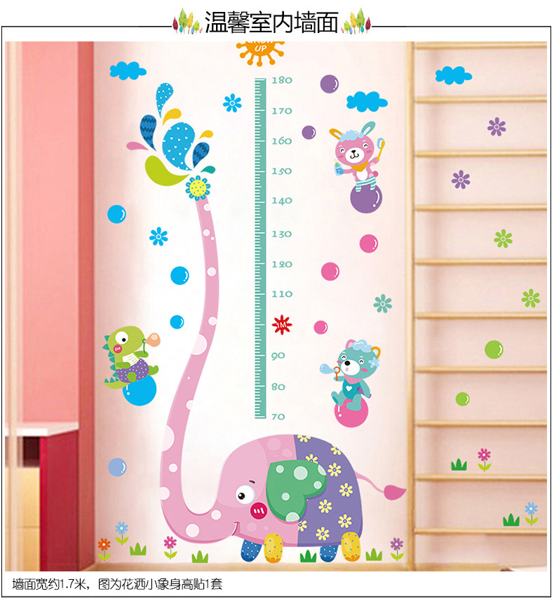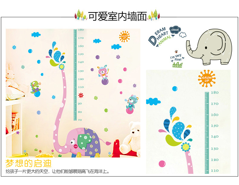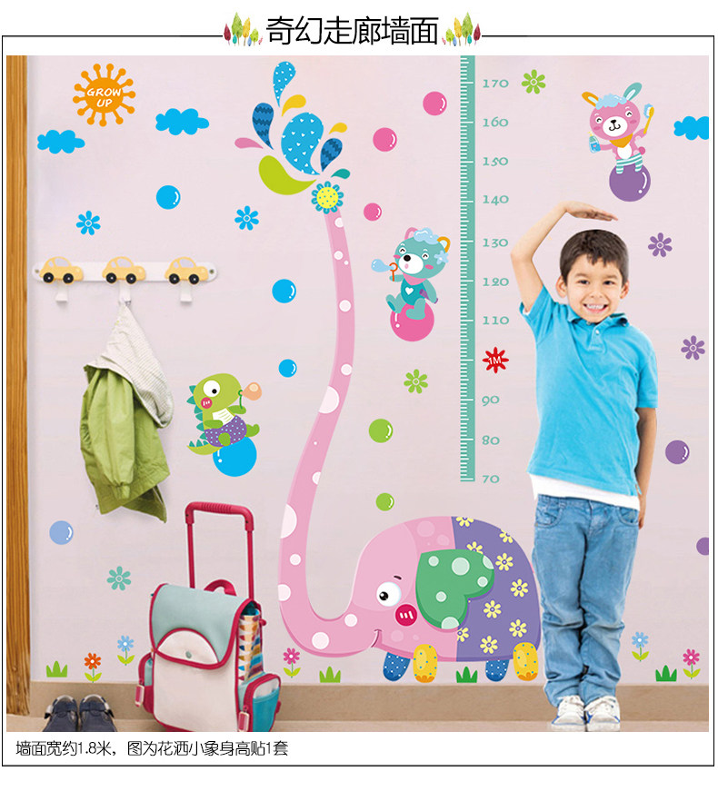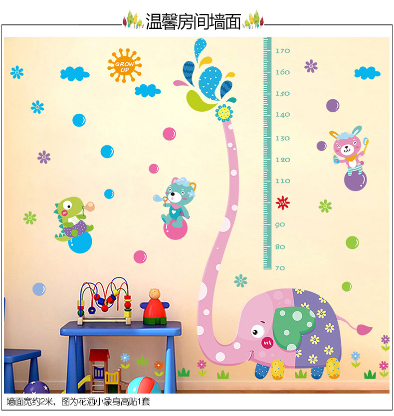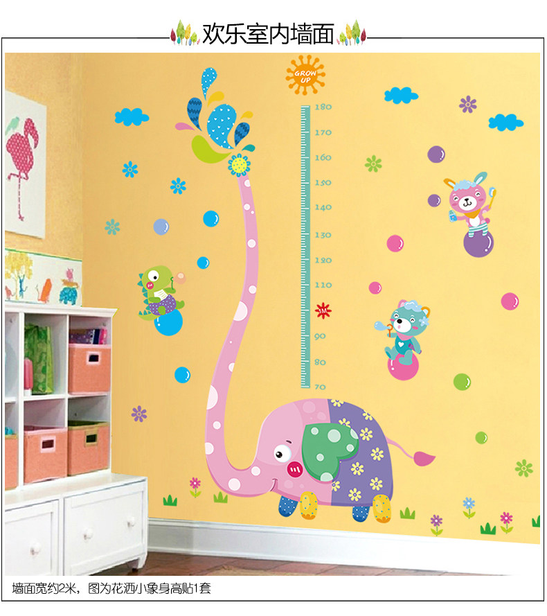 可移除大象身高贴儿童房自粘墙纸贴画卧室幼儿园墙壁装饰画墙贴纸