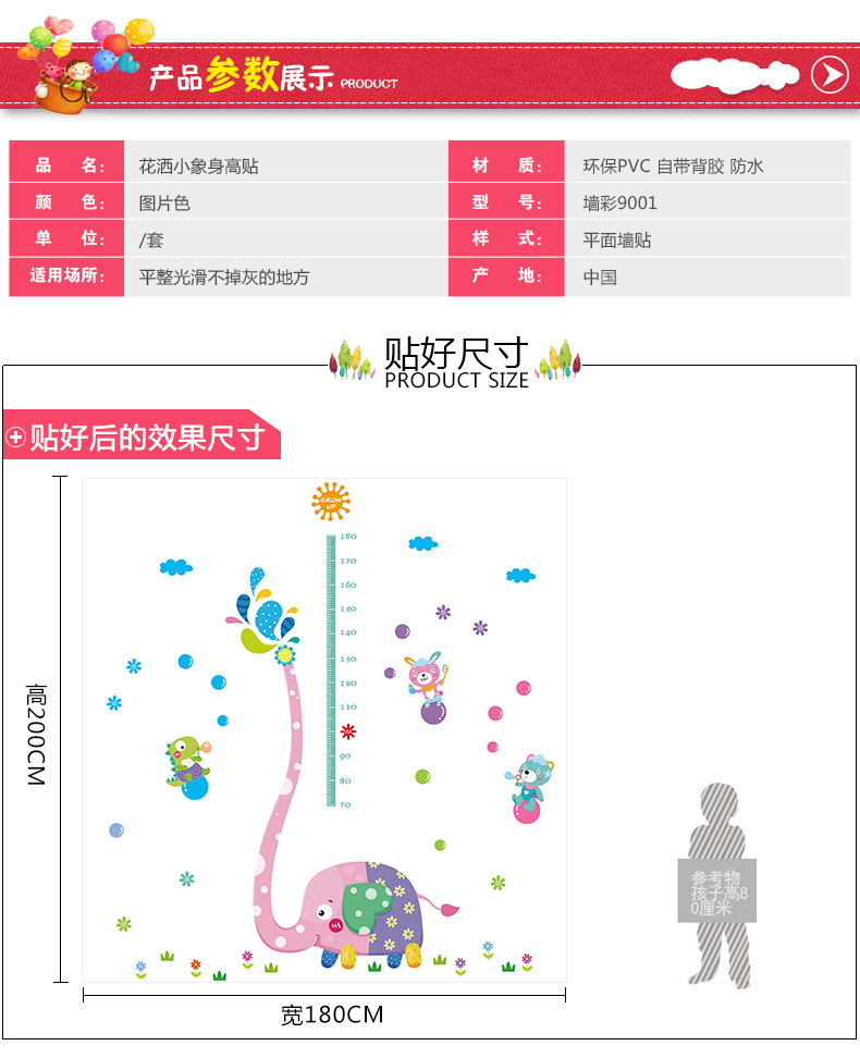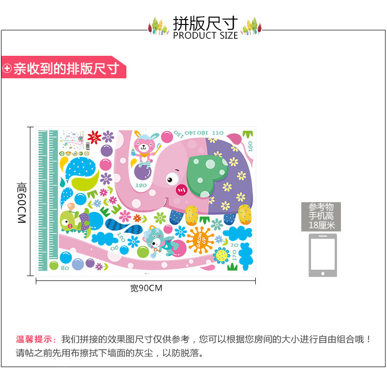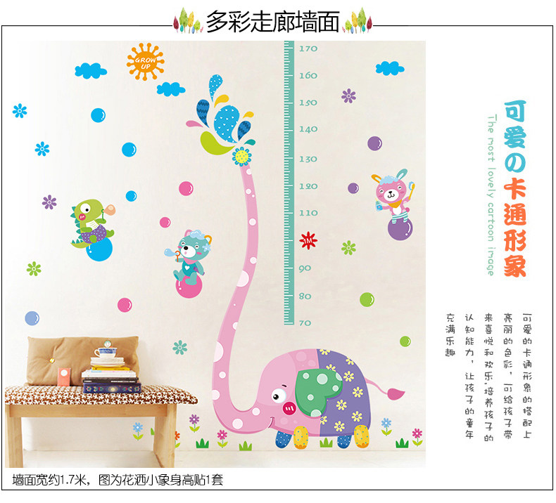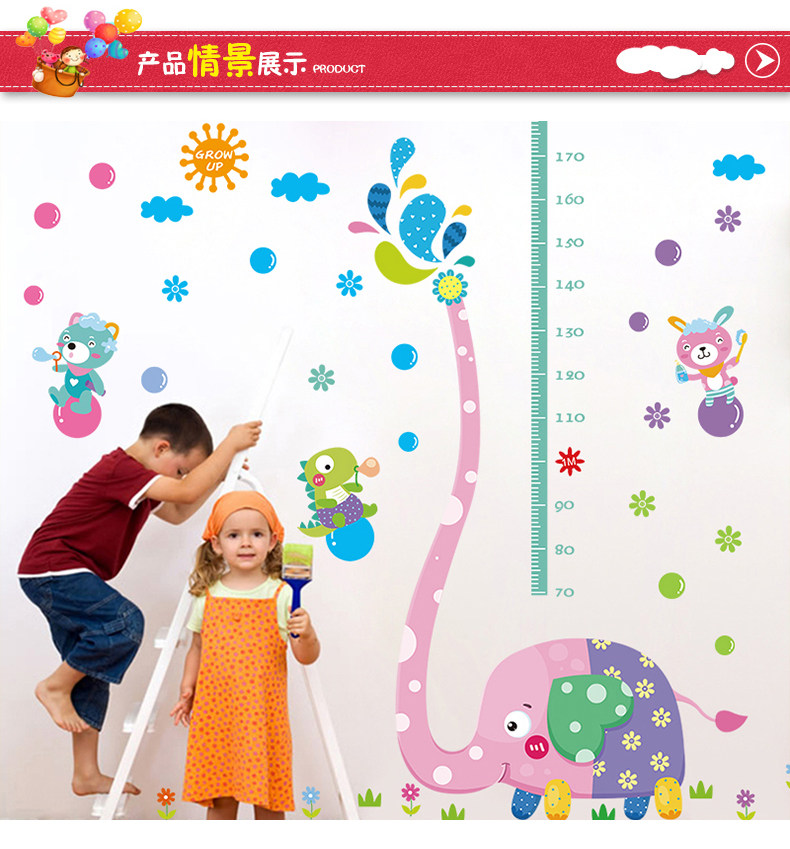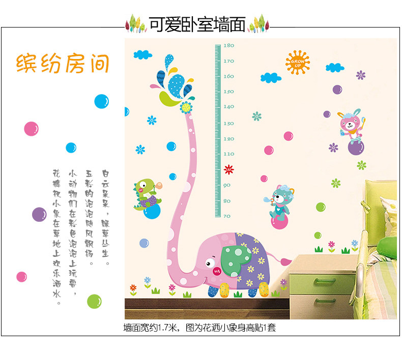 可移除大象身高贴儿童房自粘墙纸贴画卧室幼儿园墙壁装饰画墙贴纸