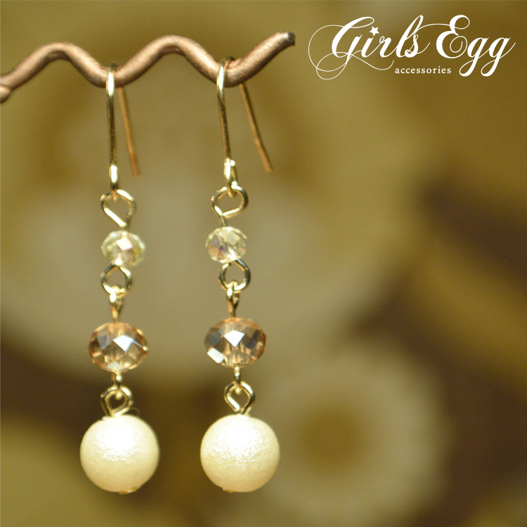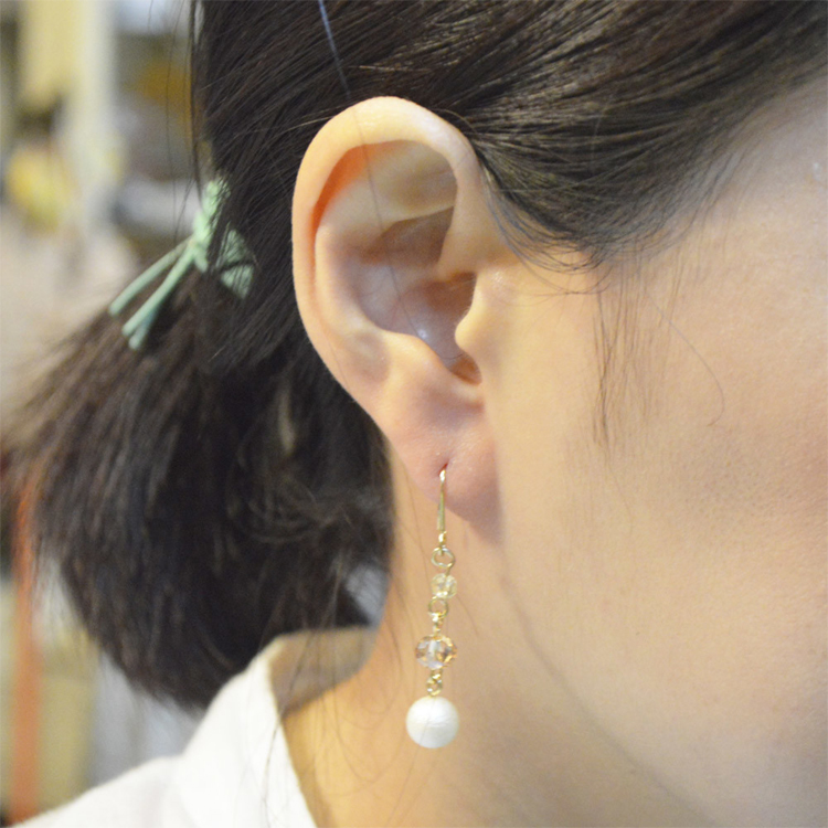 | ふんわりと柔らかく輝くパールにカットビーズを合わせて華やかな仕上がりに。カジュアルからフォーマルまで様々なオケージョンで気を使わず負担なく使えます。もちろんプレゼントにも最適です♪ | |