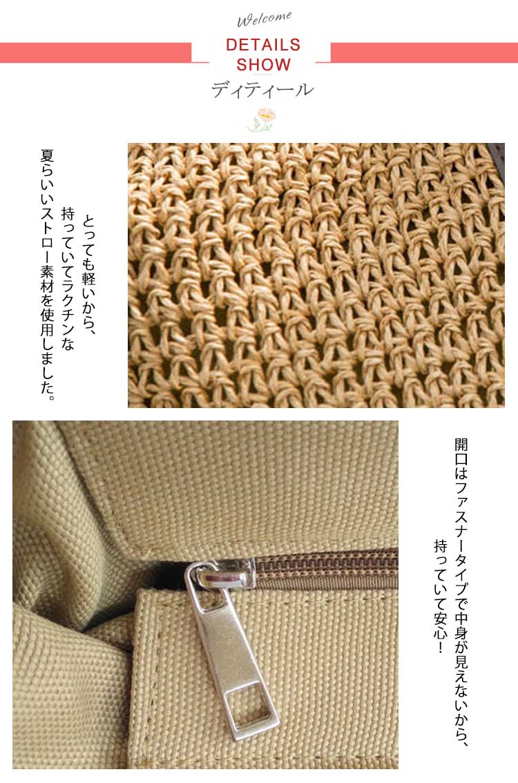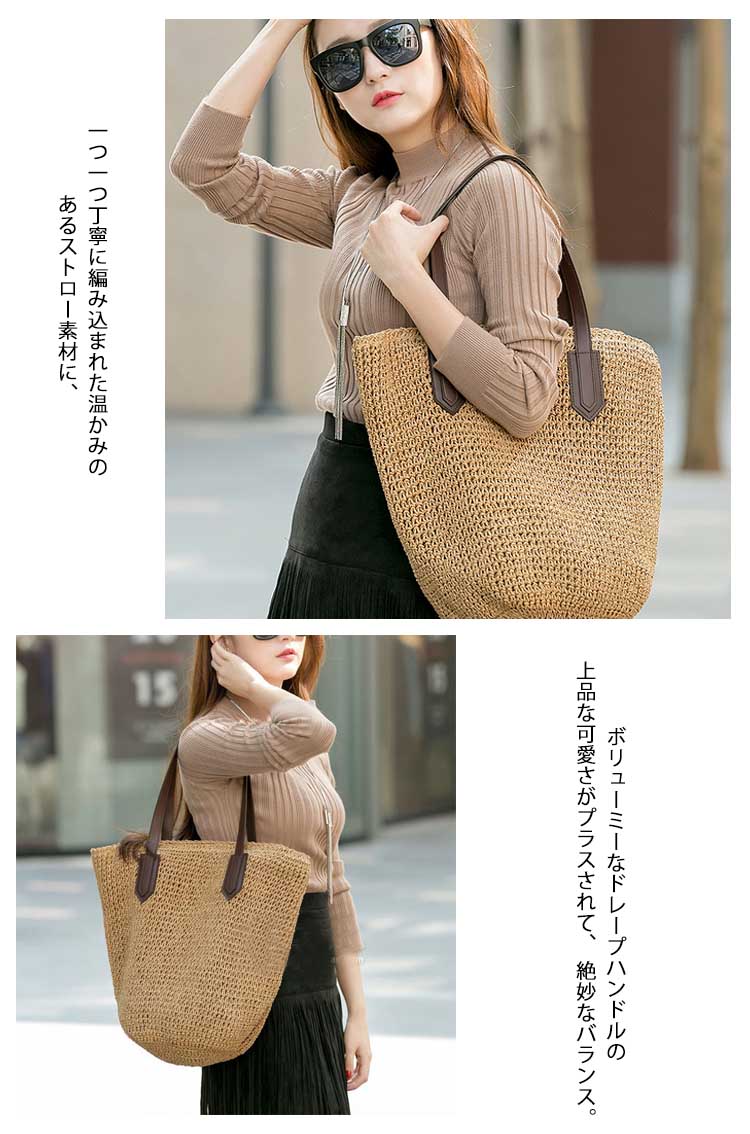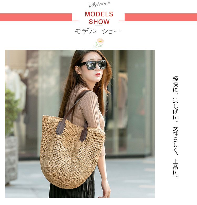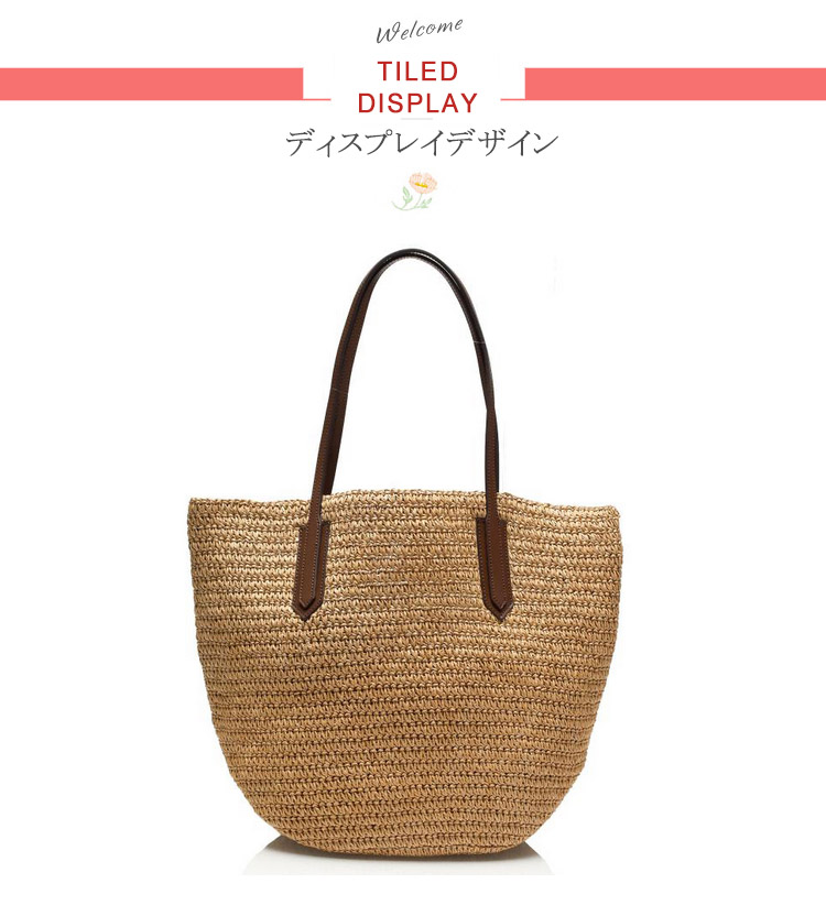 | 軽快に、涼しげに。女性らしく、上品に。一つ一つ丁寧に編み込まれた温かみのあるストロー素材に、 ボリューミーなドレープハンドルの上品な可愛さがプラスされて、 絶妙なバランス。バッグの内側は、汚れを弾きやすい綿麻素材仕様、小ポケットあり。使いやすさにもこだわっている所が、うれしいポイント。 | |