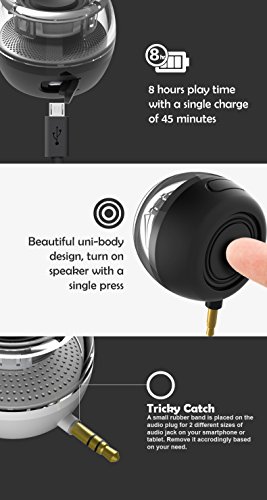 Gadget.Cool Line-in Mini Speaker - Using 3.5mm Audio Jack, Plug & Play, Compact & Light Weight Design, Powerful & Clear Bass, Built-in Battery & Micro USB Port, w/ Extra Bonus (black)