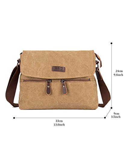 -. Feature : Main Material:high cotton canvas, nylon lining and PU leather zips . / Approx Dimensions: 13.0" L x 9.4" H x 3.5"W .Big enough to hold your 13" laptops, iPad, kindle, books, files, A4 folders, 2 inch binders and more. / Structure: A total of 6 pockets. 1 main zipped pocket, 2 small front zipped pockets, 1 back zipper pocket , 1 inner open pocket and 1 inner zipped pocket. / Comfortable shoulder strap with wide pad can be adjusted from both side. / Degohome: Awesome messenger bag that you will receive many compliments from your family and friends.