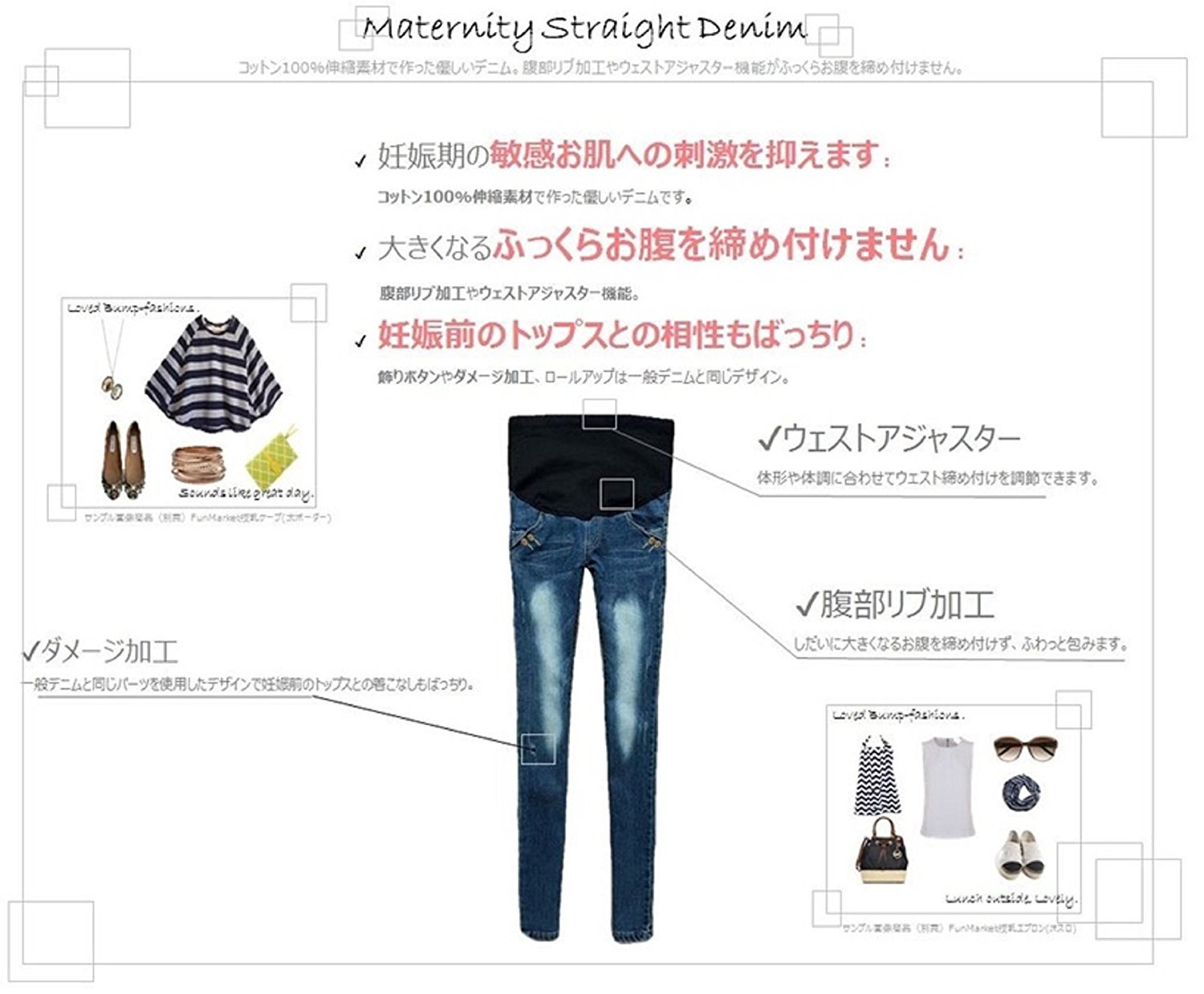 ◆ Denim fabric is subjected to light damage processing, sophisticated design is not noticeable for maternity only.