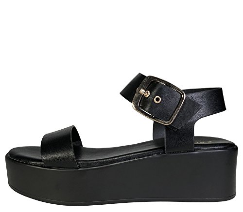 Bamboo Women's Single Band Platform Footbed Sandal With Quarter Strap
