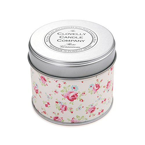 Clovelly Soap Co Handmade Natural Rose Geranium Scented Soy Wax tin Aromatherapy Candle made in UK with Pure Essential Oils
