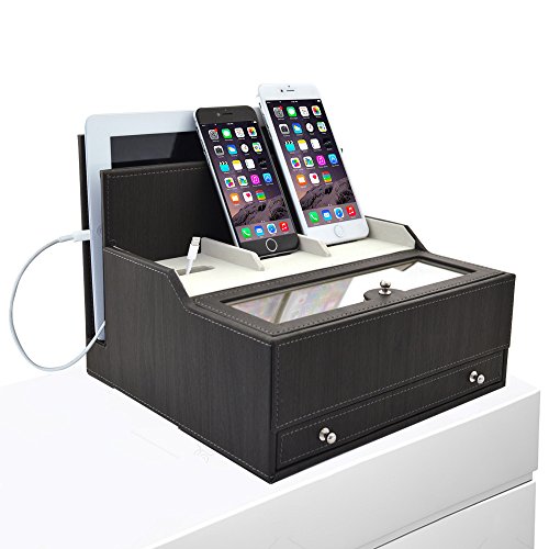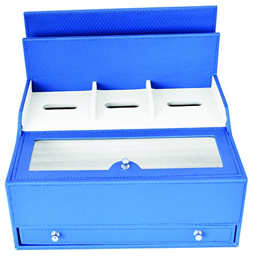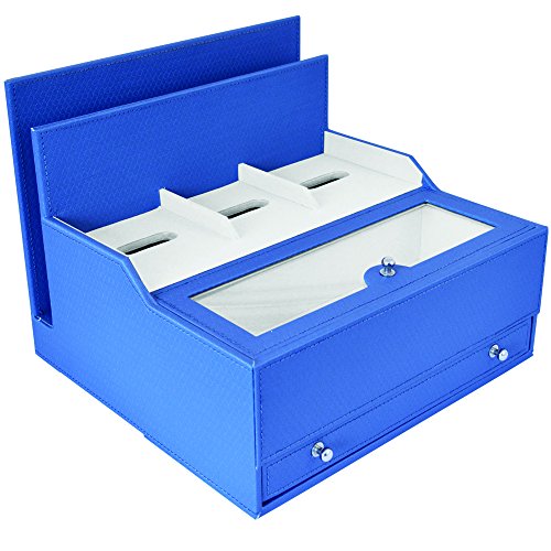 -. Title : iCozy Charging Valet: Office / Desk Organizer & Electronics Caddy Faux Leather Station Blue