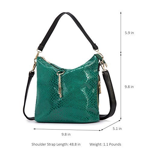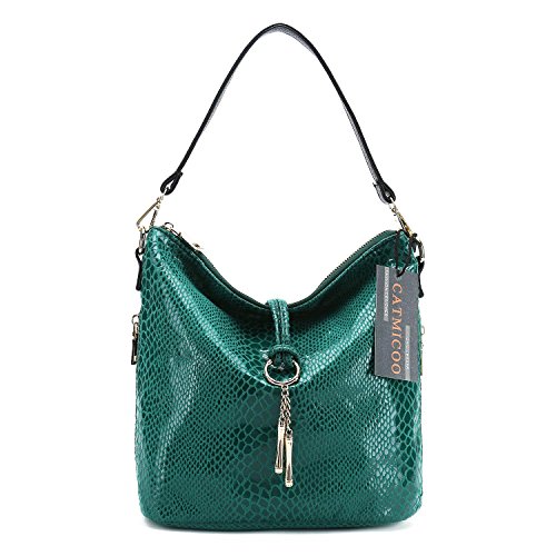 -. Brand : Catmicoo -. Department : womens -. Feature : High quality synthetic leather with trendy snake skin pattern designer purses for ladies / Metal chain women's hobo handbags with a removable handle strap and a removable crossbody strap / Female hobo bag design with gold metal parts can be used as a shoulder bag for women or a crossbody tote purse / Two interior slips, one zipper bag, and a zipper compartment giving large space as a womens designer handbag / Women purse size: 9.8"x9.8"x5.1" (LxHxW), cross body strap length: 48.8", handle height:5.9" -. ProductGroup : Shoes -. ProductTypeName : HANDBAG -. Size : Medium -. Title : Small Crossbody Bags For Women Designer Handbags Stylish Ladies Shoulder Bag Tote