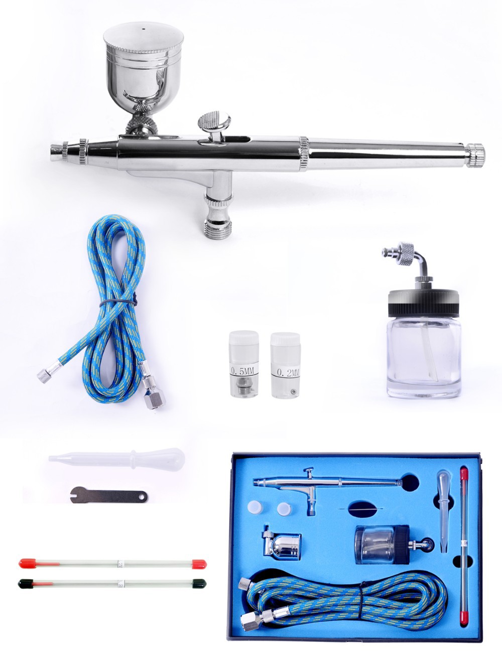 Dual Action Airbrush Kit  0.2mm/0.3mm/0.5mm Needle Air Brush Spray Art airbrush Makeup Styling Tools Nail Tattoos SP134KTLWG