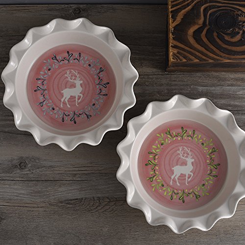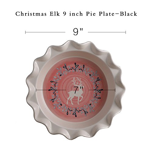 Christmas Elk 9 inch Pie Plate, DL Stylish Nonstick Baking Pan with Contoured Edges (black)
