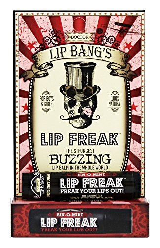 The warming tingle of cinnamon meets the icy cooling sensation of peppermint with the BUZZ you love in SIN-O-MINT buzzing lip balm! Just pucker up and smear this awesome balm on your kisser. Within a minute your lips are going to FREAK OUT. We're talking about a crazy vibrating buzz that isn't like anything you've ever felt before. Yeah, baby! Your lips are going to feel electrified and that awesome sensation is highly addictive! (don't say we didn't warn you!) Not to mention the super healthy moisturizing ingredients will leave your lips soft and highly irresistible. Want to have even MORE fun? Freak out the next person you kiss when you transfer LIP FREAK from your lips to theirs.