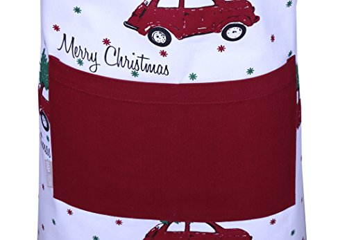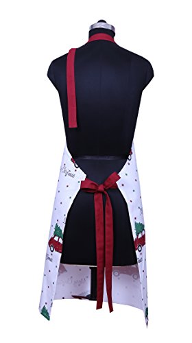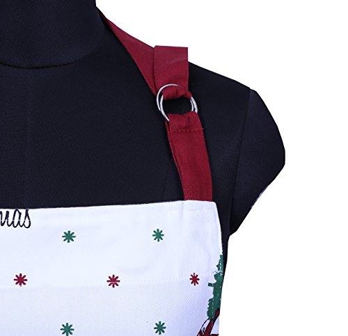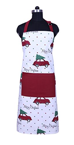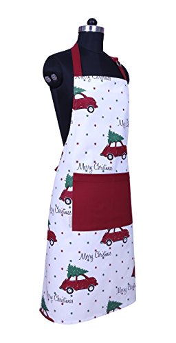 Apron, Unique Merry Christmas Design, Aprons for Women with Pockets, 100% Natural Cotton, Eco-Friendly & Safe, Adjustable Neck & Waist ties, Machine Washable, Cute Apron by CASA DECORS