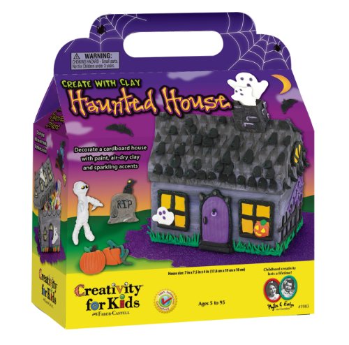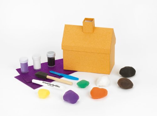 This fun family craft will make a spook-tacular decoration for your table. The 7"w x 7"h x 4"d embossed haunted house comes ready to decorate with washable paint and air-dry clay. The kit includes all the tools and supplies that you need! You can store your Halloween treats and trinkets inside the house. This fun decoration is made from sturdy cardboard and can be used year after year!Feature