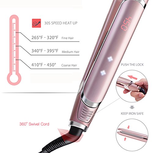 ADJUSTABLE TEMPERATURE:Digital Control temperature ranges from 265℉ to 450℉, 30s instant heat up, suitable for fine, coarse, thin and thick hair