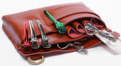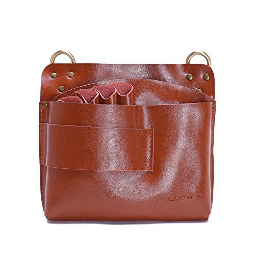 Large Barber Scissors Pouch with Belt, Salon Hairdresser Tool Bag, Real Leather - Brown