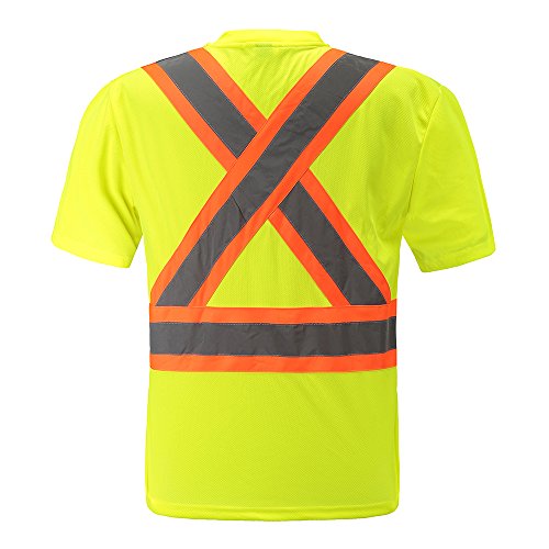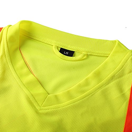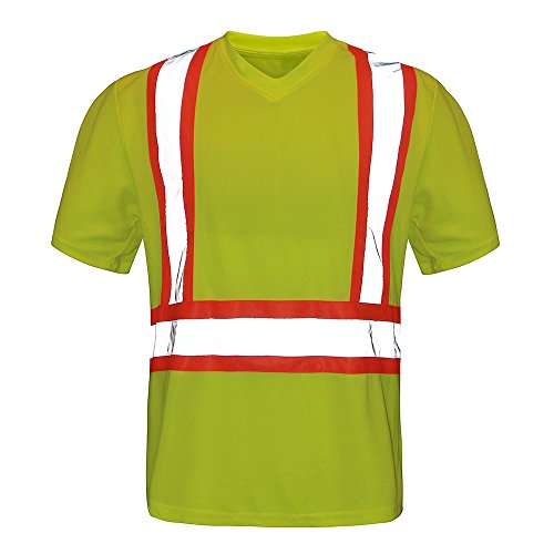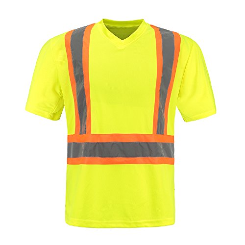 High Visibility Moisture Wicking Long Sleeve v neck Safety Shirt | Silver Reflective Tape | ANSI Class 2 Construction Security Safety Work wear (M)