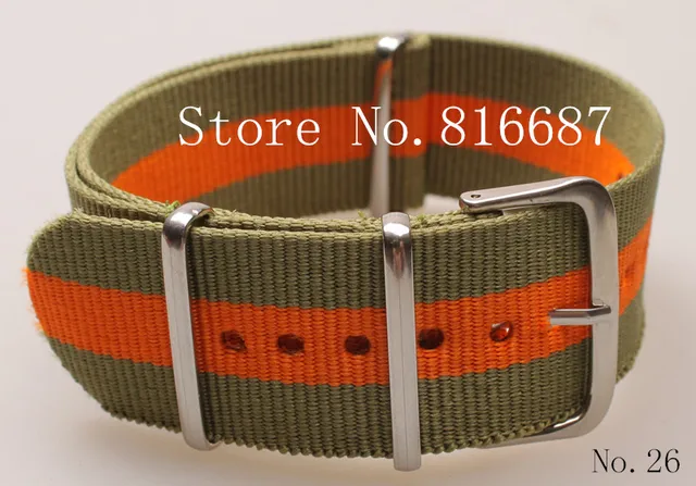 새로운 도착 1 개 고품질 24 미리메터 & 2green-orange 및 나일론 시계 밴드 스트랩 방수 시계 스트랩