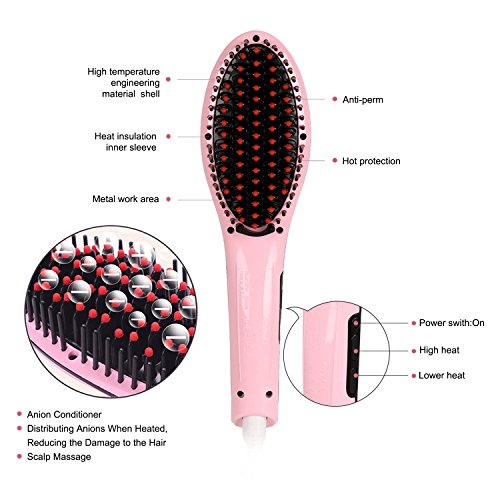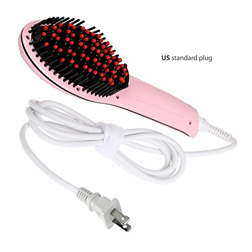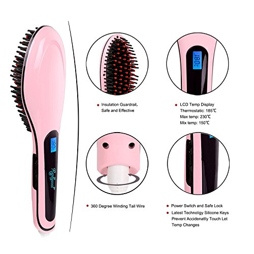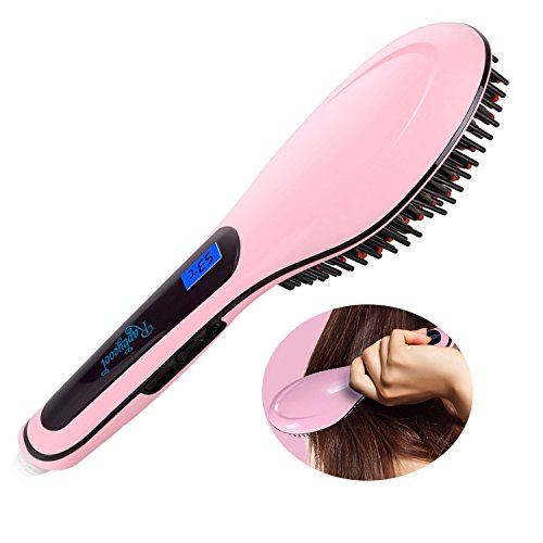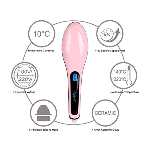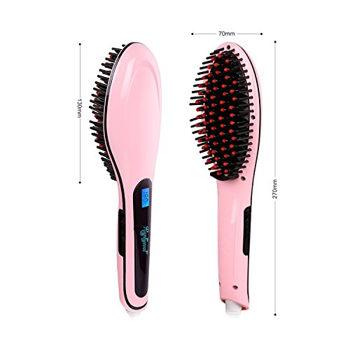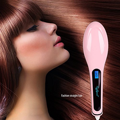 Ocathnon Magic Electric Hair Brush Faster Straightening Styling Comb Digital Anti Static Ceramic Hair Straightener Heating Hair Brush-Pink