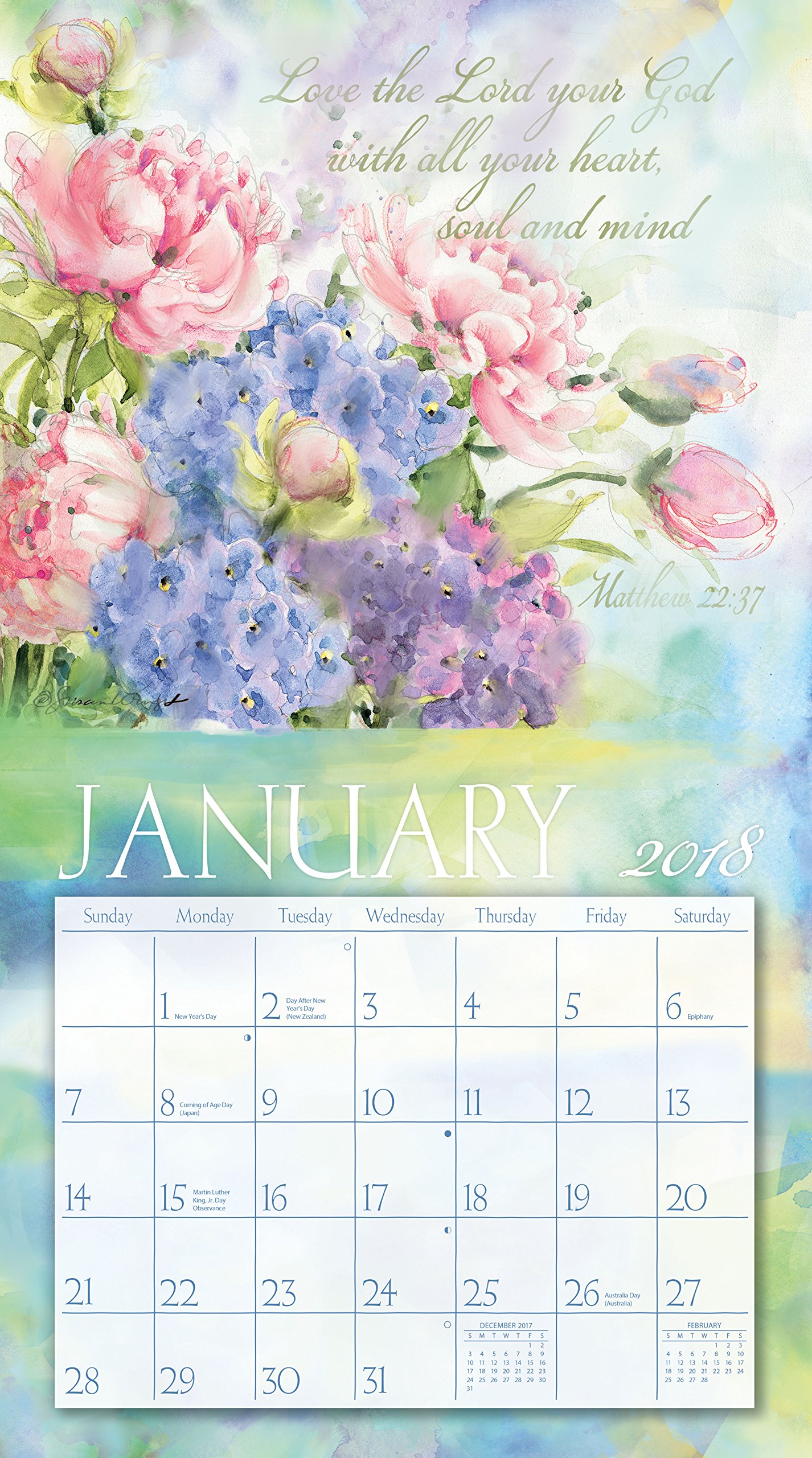 A luxury import calendar "Lang Graphics" coloring the year with full color American country illustration.