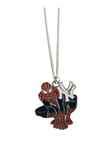 -. Feature : New York Yankees enamel Spiderman pendant on silver chain necklace. / Officially licensed by both MLB and Marvel / 18" silver chain / Spiderman pendant is 1" x 1" / What a great gift for the Spiderman or Yankees fan! ApproP.R.Iate for both adults or children this can be worn to the game or around town. Be sure to check out our other Yankees jewelry items!