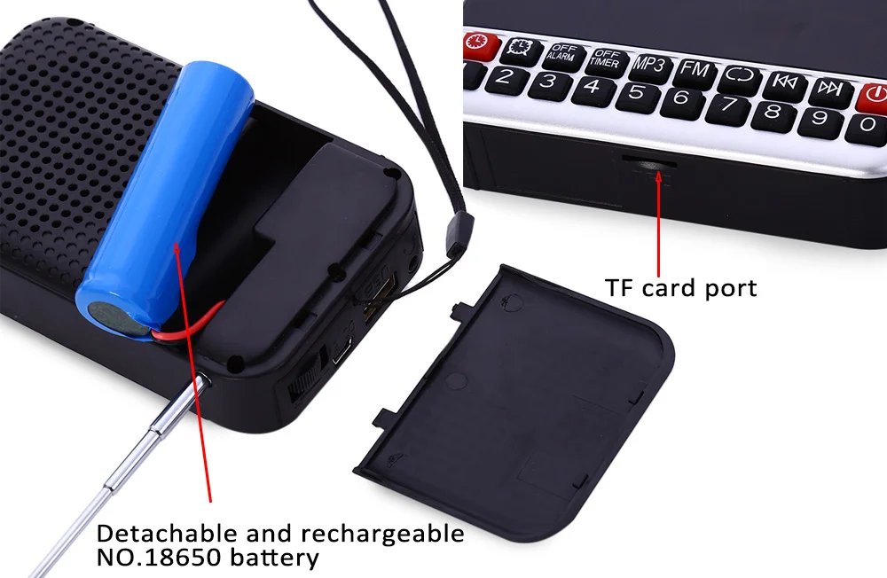 - 18650 replaceable battery, long playback time;