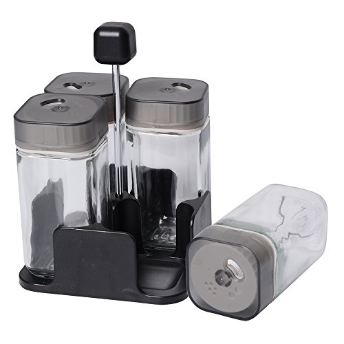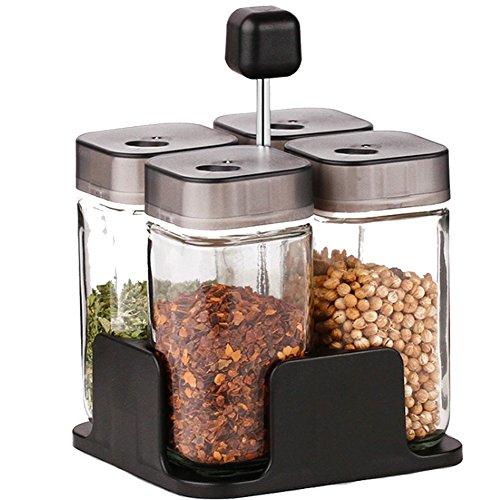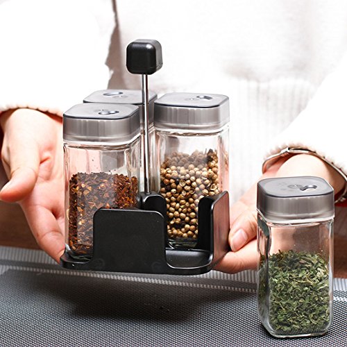 CHICHIC Salt and Pepper Shakers Sets, Glass Salt / Sugar / Spice / Pepper Shaker, Seasoning Cans, Spice Jars, with Adjustable Pour Holes, Set of 4