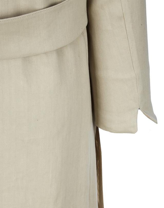 카라 부분에 텍스처가 다른 원단을 배색하여 심플한 디자인에 포인트를 준 코트입니다. 허릿단 뒤쪽의 스트랩 장식으로 핏을 잡아주었습니다.