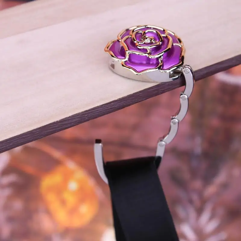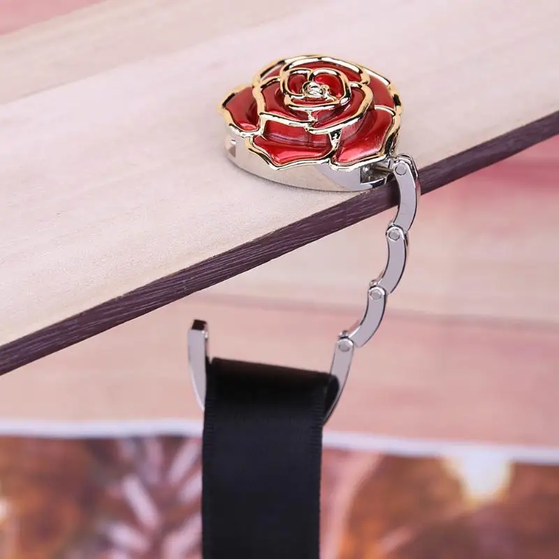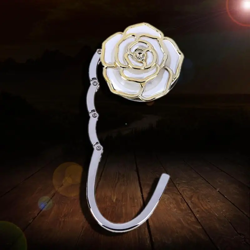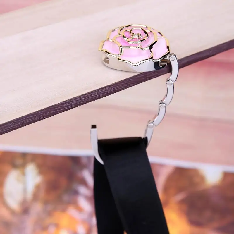 Portable Folding Table Bag Hook Hanger Holder Support Rose Crystal Rhinestone Decoration